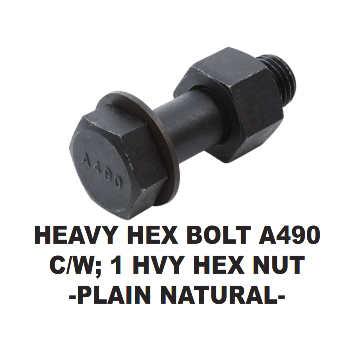 Heavy Hex Bolt F10T Dia. M.33 - M.42 + 1 Nut + 1 Wp Black